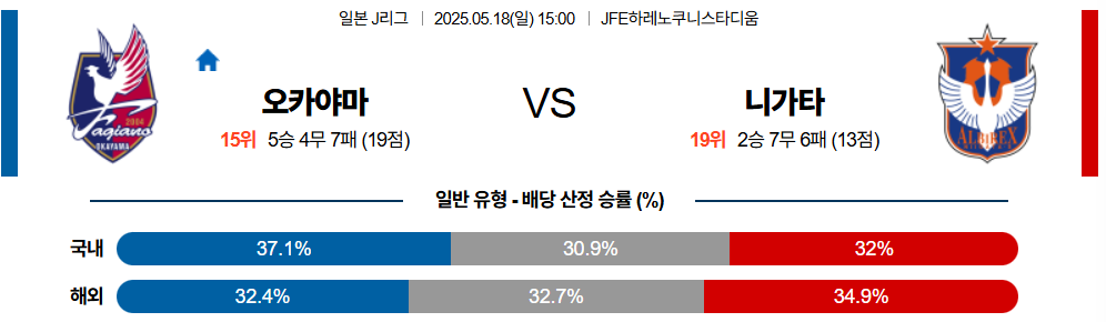5월 18일 축구중계 오카야마 니가타 J리그 스포츠분석