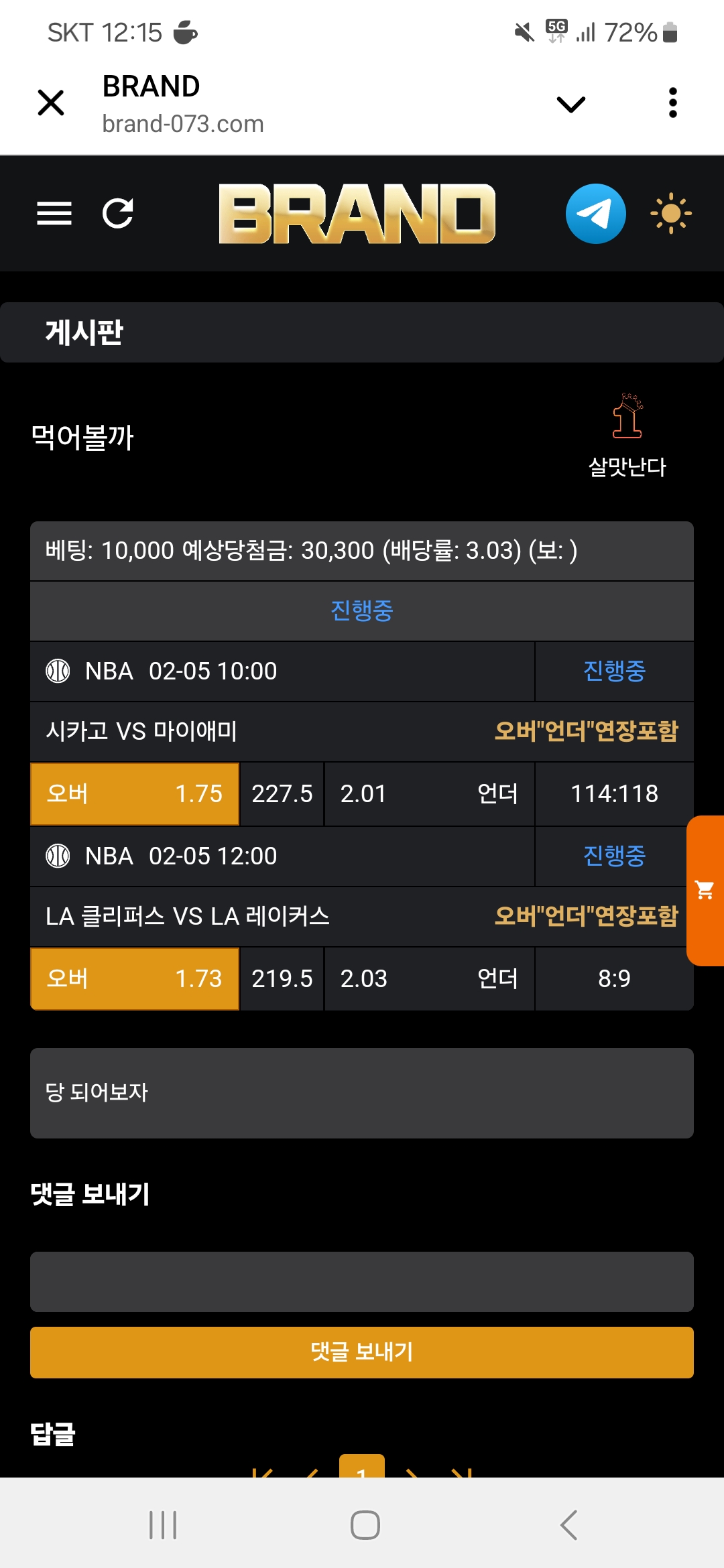 오후경기 낙 +1