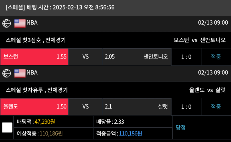 저녁경기적중 +3
