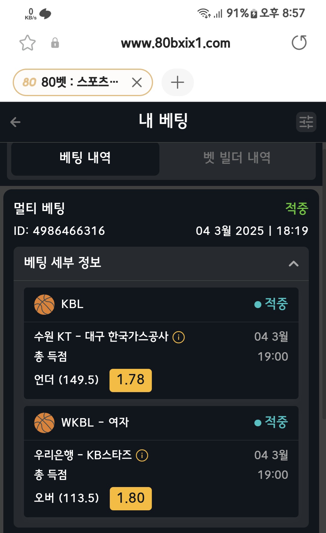 아침 브라질농구 1쿼조합 적중
