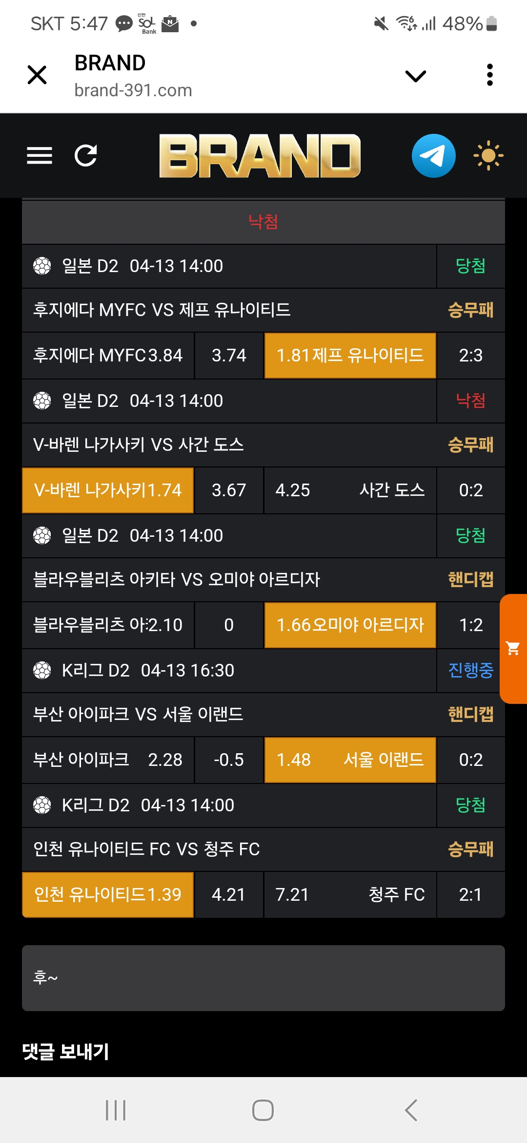저녁 3경기 가봅니다
