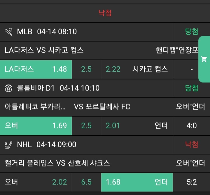 저녁 3경기 가봅니다